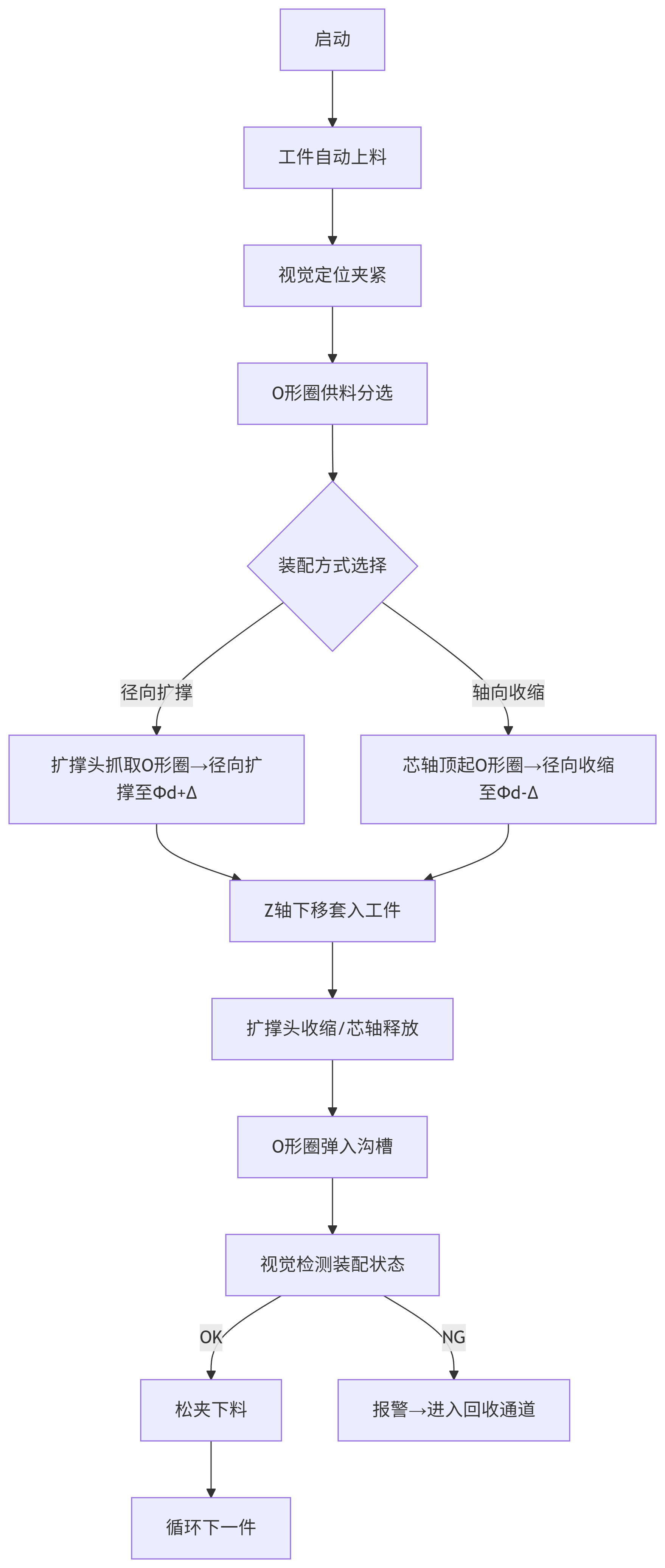 100mm)的痛點,實現高效自動化生產的全自動化裝配機械設備。建議配合O形圈預處理設備(如冷凍收縮柜)使用,可進一步降低裝配力30%。設備需在溫度23±2℃、濕度40-60%RH的潔凈車間運行,避免橡膠件老化。此設計適用于汽車油封、風電法蘭、航天密封環等大型O形圈裝配場景,投資回報周期通常≤18個月。" />