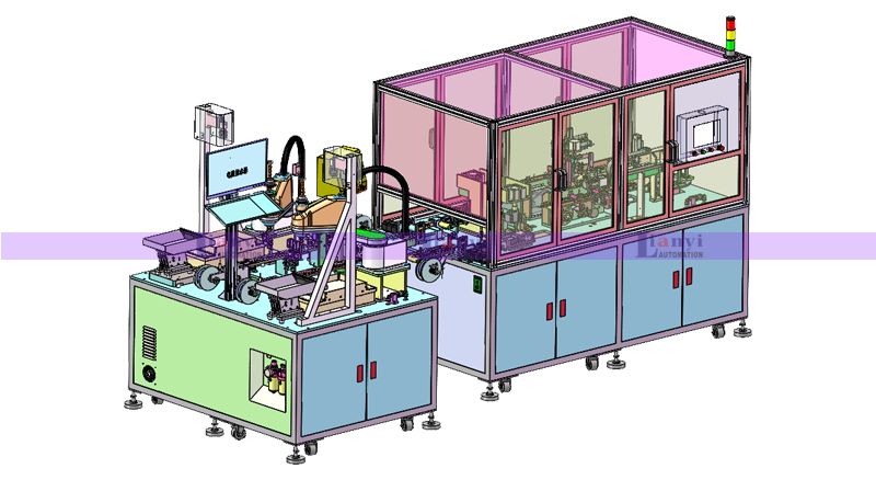 1、自動送料:通過柔性振動盤輸將金屬片材送入待選區(qū)。